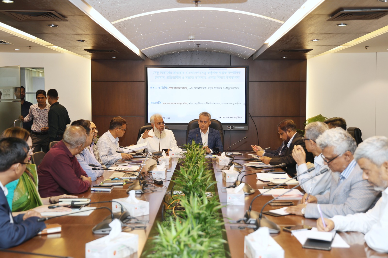 গণপ্রজাতন্ত্রী বাংলাদেশ সরকারের মাননীয় মন্ত্রী শেখ রবিউল আলম, এমপি, মাননীয় প্রতিমন্ত্রী জনাব হাবিবুর রশিদ, এমপি এবং মাননীয় প্রতিমন্ত্রী জনাব মোঃ রাজিব আহসান, এমপি সেতু বিভাগ ও বাংলাদেশ সেতু কর্তৃপক্ষের ঊর্ধ্বতন কর্মকর্তাদের সাথে এক গুরুত্বপূর্ণ মতবিনিময়